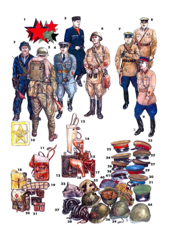 Знаки различия, обмундирование, снаряжение сухопутных войск Красной Армии и войск НКВД
