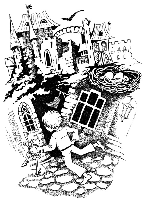 Фабіан відступив крок назад, щоб глянути на дзиґарі на вежі. Часу, либонь, удосталь, подумав він. Нехай Птахоспів ще хвильку-другу поспить, а він тим часом подивиться на лелек. Фабіан кинувся до бокових дверей, які вели наверх лелечої вежі, встромив здоровенного старовинного ключа в замок, крутнув ним туди-сюди й смикнув за ручку. Важенні двері не піддалися. Фабіан нетерпляче зітхнув і наліг на них з усієї сили. Правду кажучи, хлопець, як на свої дванадцять років, був дуже проворний. І от нарешті двері відчинилися, й Фабіан побіг східцями на горішній ярус вежі.