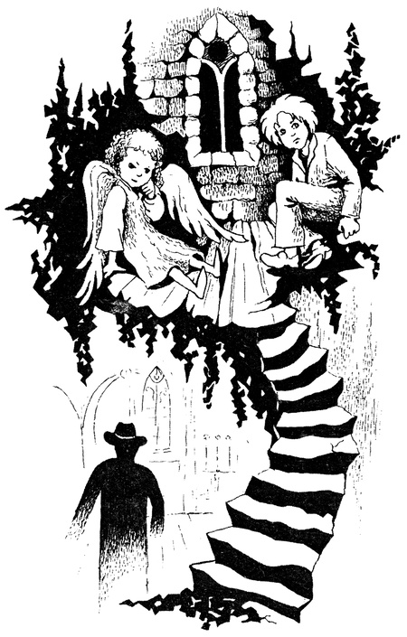 — Якщо ти не можеш літати, то дістанешся сюди тільки таким чином, — сердито гукнув він ангелові. — Або спускайся, або лишайся нагорі. Мені байдужки. В мене є купа інших справ, і я не збираюся стовбичити тут і сперечатися з тобою.