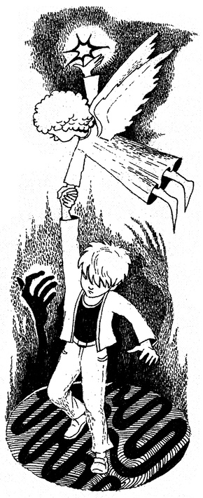 — Агов, стривай-но! — Фабіан збагнув, що ангел лагодився дременути від нього, лишивши купу загадок і більш нічого не пояснивши. Це було геть у його дусі! — Що це ти щойно стелемешив? — нетерпляче спитав він і схопив його за одежину. — Невже ти запросто можеш казати такі речі, а тоді кудись вшиватися? Так не роблять.