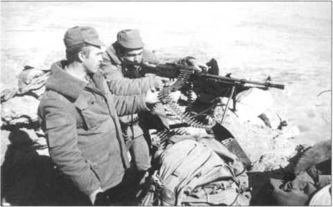Прочее имущество, необходимое при выходе на несколько дней, помимо набиравшихся с запасом боеприпасов, включало воду и продовольствие, необходимые в холодные ночи теплую куртку и свитер, спальный мешок, одеяло и предметы обихода, укладывавшиеся в объемистый рюкзак и навьючивавшиеся на него. Помимо собственного груза, на бойцов распределялось общее имущество — тяжелое вооружение группы и боекомплект к нему. С учетом патронов, лент, гранатометных выстрелов и мин, на каждого приходилось, в лучшем случае, 35–40 кг. При многодневном рейде, с учетом задачи, местности и времени года, нагрузка могла достигать и предельных по выносливости 50–60 кг.