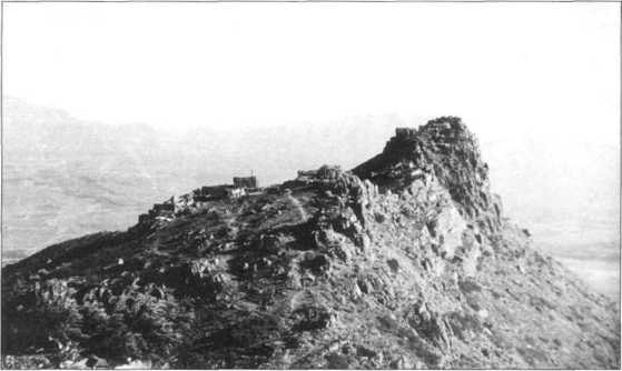 На сторожевых заставах и мостах к концу первого года войны несли службу 20200 солдат и офицеров. Их задачей было наблюдение и контроль за местностью, оборона и охрана режимных зон вокруг городов, гарнизонов и магистралей. На фото — застава у входа в Панджерскую долину. На вершину скалы вынесен наблюдательный пост, у подножия оборудованы укрытия для техники, казарма и склад снабжения окрестных постов.