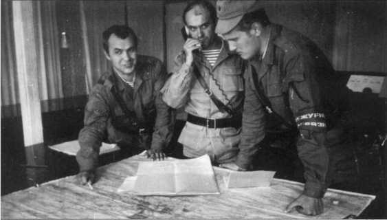Вертолетчики Газни с командиром разведгруппы (с трофейной винтовкой), на бедре которого видна объемистая пластмассовая кобура АКС-74У. Разработанный для летного состава жилет носимого аварийного запаса НАЗ-И, скроенный из плотной синтетической ткани оливкового цвета, служил для размещения радиостанции «Комар», пистолета ПМ, обойм к нему, пары автоматных магазинов, сигнальных патронов и перевязочного пакета. Жилет заслужил признание не только в авиации, но требованиям к «боевому» он все же не удовлетворял, в первую очередь из-за малого носимого боезапаса, будучи ориентированным на нужды летчика в расчете на скорую эвакуацию.