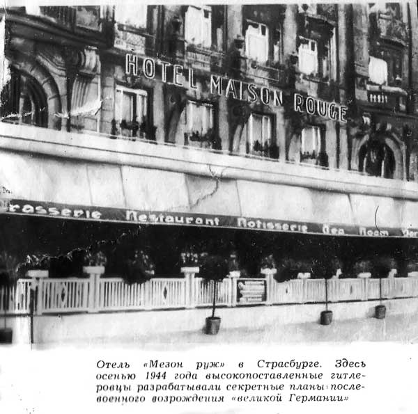 Отель «Мезон руж» в Страсбурге. Здесь осенью 1944 года высокопоставленные гитлеровцы разрабатывали секретные планы послевоенного возрождения «великой Германии».