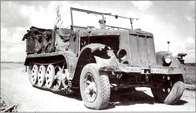 Тяжелый немецкий полугусеничный тягач, захваченный советскими войсками. Южный фронт. Лето 1942 года.