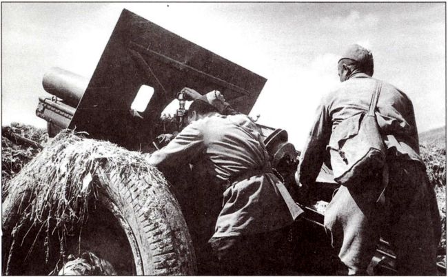 Немецкая 105-мм гаубица FH 18/40, захваченная советскими войсками. Южный фронт, лето 1942 года.