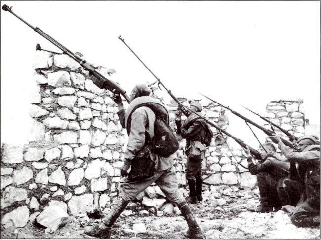 Советские пехотинцы из 64-й армии готовятся отразить атаку немецких танков. Западный берег Дона, июль-август 1942 года.