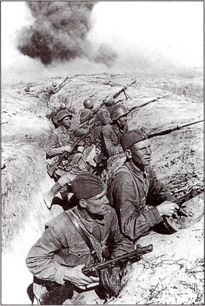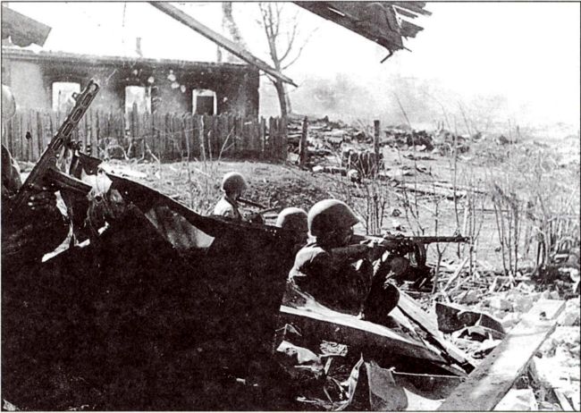 Большое применение в Сталинграде нашла тактика «штурмовых групп» — небольших отрядов, вооруженных легкими и тяжелыми пулеметами, автоматами, противотанковыми ружьями. Группы поддерживали друг друга стремительными контратаками. Сама инструкция их действий составлена в боевом и наступательном суворовском стиле: «Врывайся в дом вдвоем — ты да граната, оба будьте одеты легко — ты без вещевого мешка, граната — без рубашки: врывайся так: граната впереди, а ты за ней; проходи весь дом опять же с гранатой — граната впереди, а ты следом». Но когда боец ворвался в дом, то в силу вступает неумолимое правило: успевай поворачиваться! На каждом шагу его подстерегает опасность, «Не беда — в каждый угол комнаты — гранату, и вперед! Очередь из автомата по остаткам потолка; мало — гранату, и опять вперед! Другая комната — гранату! Поворот — еще гранату!..» Но ведь внутри объекта враг может перейти в контратаку. «Не бойся! Ты уже взял инициативу, она в твоих руках. Действуй злее гранатой, автоматом, ножом и лопатой! Бой внутри дома бешеный. Поэтому всегда будь готов к неожиданностям. Не зевай!»