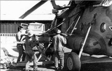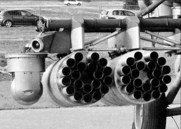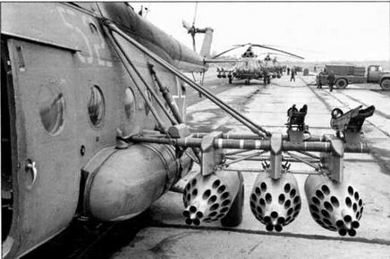 Вооружение вертолета Ми-8ТВ: блоки УБ-32-А24 и пусковые для ПТУР «Фаланга»; внизу — пулемет А-12,7