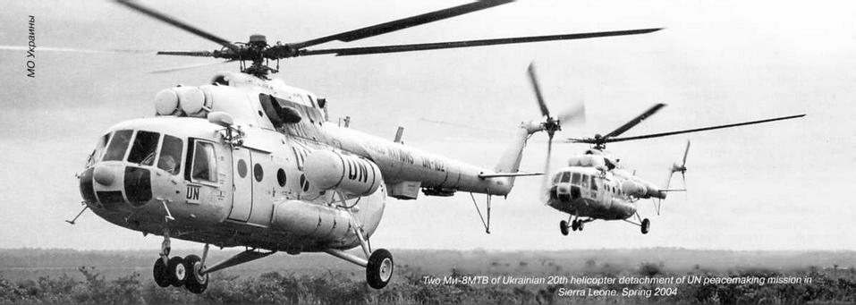 Специалисты украинского АО «Мотор Сич» создали на базе Ми-8Т свой транспортно-штурмовой вариант Ми-8МСБ-В. «АиВ» уже неоднократно писал об этой машине (см. №№ 4, 5’2014, 4’2015), поэтому лишь напомним, что она оснащена двигателями ТВЗ-117ВМА-СБМ1В4Е серии мощностью 1500 л.с. В состав вооружения может входить противотанковый комплекс «Барьер-В», на борту установлен комплекс защиты фирмы «Адрон». Первые три таких вертолета были переданы Вооруженным Силам Украины 6 декабря 2014 г, правда, без вооружения.