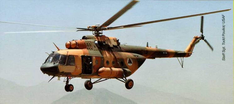 Так, на шести балочных держателях он мог нести не только блоки НАР или бомбы, но и до восьми ПТУР «Штурм-В» или более современные ПТУР «Атака», а также до четырех ракет класса «воздух-воздух» «Игла-В» (возможен вариант и без управляемого оружия). Предусмотрено круглосуточное применение машины. На борту может разместиться до 26 десантников, которым для покидания вертолета требуется всего 7-8 с, что стало возможным за счет двух боковых дверей и рампы. Правда, если машина оснащена этой рампой, т.к. по требованию заказчика она может комплектоваться и обычными створками грузолюка, а также «стеклянным носом».