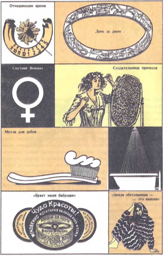 Но как не заблудиться в мире вещей? Как отобрать среди них самые важные, самые интересные? Поступим так. Проследим, что происходит с нами в обычный, ничем не примечательный день. Утром нам помогает проснуться будильник. Мы встаем, смотрим на календарь и направляемся в ванную. Сколько привычных и нужных вещей там — зеркало, расческа, мыло, зубная щетка… Потом мы собираемся в школу, затем… Но давайте все по порядку.