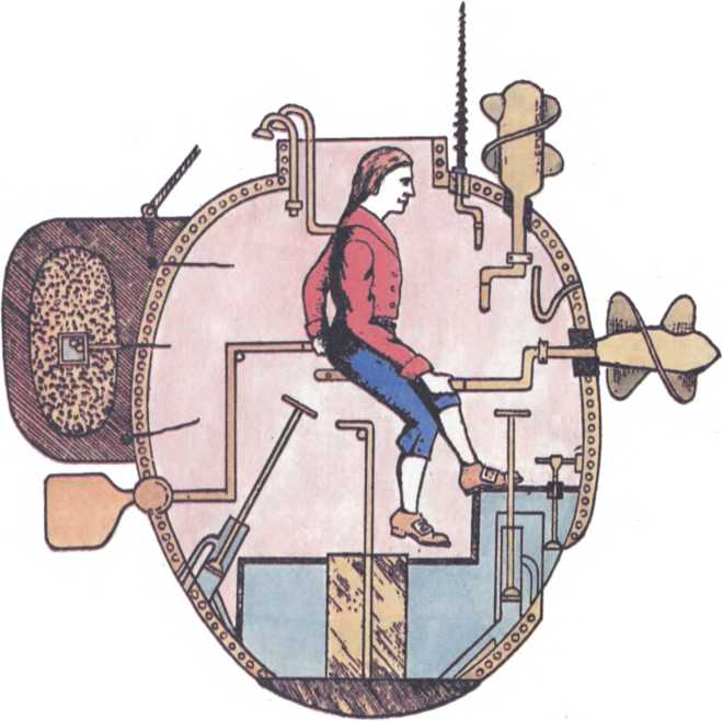 Было бы ошибкой думать, что в те далекие времена существовали только подобные незамысловатые игрушки. Совсем нет. Кто-то очень точно подметил, что хорошая игрушка может возникнуть только в том случае, если мастер, ее создающий, взрослый человек, сам начнет играть, и играть всерьез. Многие древние забавы взрослых часто содержали в себе элементы важнейших открытий, сделанных лишь много веков спустя после создания игрушки. Так случилось с игрушками Герона Александрийского, который прославил свое имя многими чудесными изобретениями. Даты рождения и смерти Герона точно неизвестны. Очевидно, он жил в конце II — начале I века до нашей эры. Герои описал пожарный насос, водяной орган, придумал автомат для продажи «священной» воды (кстати, почти такими же автоматами мы пользуемся и сегодня). И все же наиболее удивительным изобретением, пожалуй, остается эолипил Герона. Он представлял собой большой шар, в который были вделаны четыре изогнутые трубки. Этот шар укреплялся на оси над огнем. Когда Герон наполнял шар водой и зажигал под ним огонь, сперва раздавалось бульканье, затем из трубок со свистом начинал вырываться пар, и шар медленно приходил во вращение. Он вращался все быстрее и быстрее, выбрасывая струи пара, окутывавшие его белым облаком. Люди, видевшие это чудо, но не знавшие его устройства, думали, что в шар вселилась «нечистая» сила.