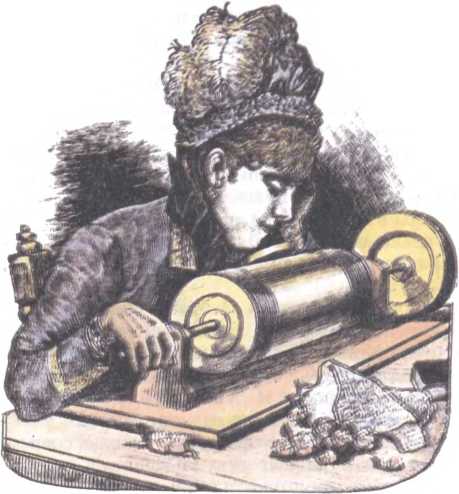 Поглядеть и послушать «говорящую машину», едва о ней сообщили вечерние газеты, хлынуло столько желающих, что на линии, ведущей в Менле-Парк, где жил и работал изобретатель, пришлось пустить дополнительные поезда. Несколько позже фонограф пока зывали в цирках, выдавая его за «необъяснимую загадку природы». Но как же выглядел фонограф? Представьте толстый цилиндр с ручкой. Это валик фонографа. Его оборачивали фольгой или бумагой, покрытой воском. Человек говорил или пел, а валик в это время вращали. И игла, прикрепленная к мембране, процарапывала на нем бороздку. Затем иглу переставляли к началу бороздки, снова крутили ручку — и голос звучал.