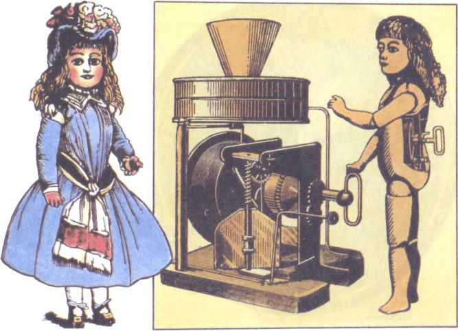 Часто игрушки делались в расчете на то, чтобы удивить, поразить даже не ребенка, а взрослых, подчеркнув богатство и изысканный вкус их хозяина. Вот так (или примерно так) мог выглядеть званый вечер в одном из дворцов Франции, Германии, Италии лет 300 назад. Слуги встречают гостей и проводят их в большой нарядный зал. Горят сотни свечей. В центре зала на большом помосте стоит клавесин, возле которого на стуле в ожидании публики сидит модно одетая девочка. По знаку хозяина она встает, кланяется гостям и, усевшись за клавесин, начинает играть. Играет она превосходно. Правда, ее строгое неподвижное лицо и скованная фигура плохо гармонируют с прекрасной музыкой. Окончив игру, она встает, кланяется слушателям, ожидая аплодисментов. И вдруг замирает. Гул изумления прокатывается по залу. Гости поняли, что «артистка» — всего лишь большая безжизненная кукла. Хозяин доволен своей выдумкой.