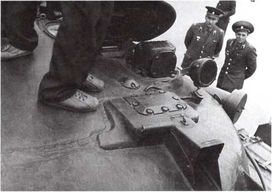 Люк механика-водителя. Перед люком — козырек прибора наблюдения ТНПО-168.