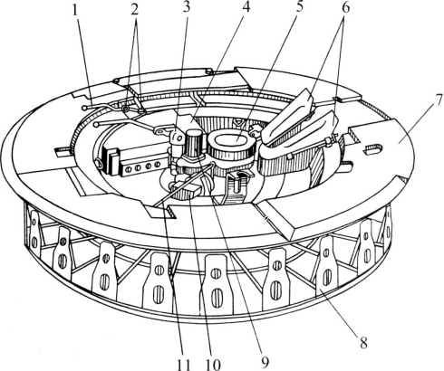 В корме башни расположен люк для выброса поддонов, механизм подъема кассет, досылатель и элементы привода крышки люка выброса поддонов.
