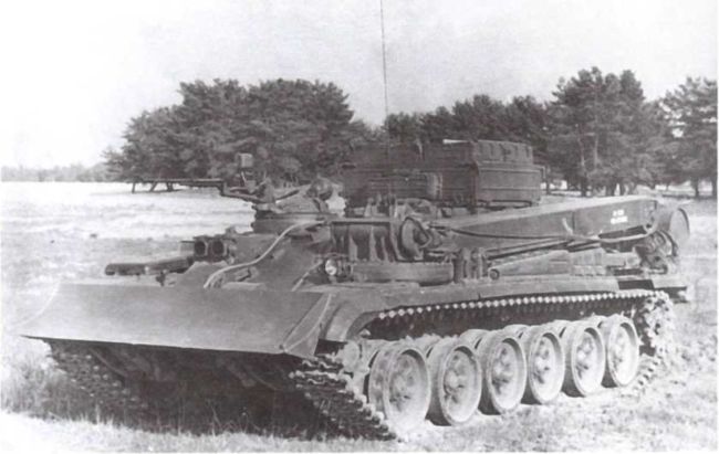 Танк «объект 172М» с оборудованием самоокапывания в рабочем положении.