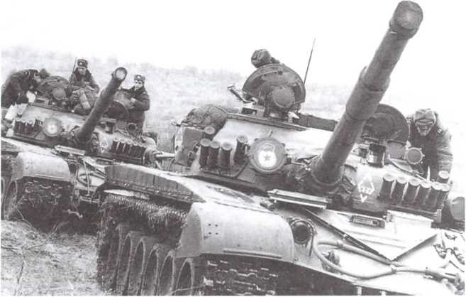 Подразделение танков Т-72 раннего выпуска. Обращает на себя внимание размещение ИК-осветителя ночного прицела слева от пушки, как на Т-64.