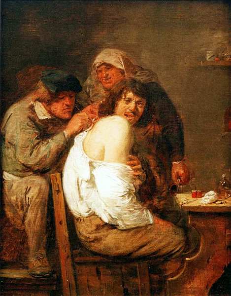 Безусловно, огромное влияние на Буша оказали работы фламандских и голландских мастеров XVI–XVII веков. Сцена в кабаке — излюбленная тема жанровой живописи этого периода. Глядя на данное произведение кажется, что время остановилось — те же безликие коричневые стены, потрепанная одежда, человеческие типы. Однако в манере его автора произошли существенные изменения: быстрый, динамичный мазок, заостренность линий. Создается впечатление, будто фигура спящего написана в один прием. Острый глаз карикатуриста моментально уловил характерное положение тела, еле удерживающегося на стуле. Фактура картины «кипит» от экспрессивности работы кисти.