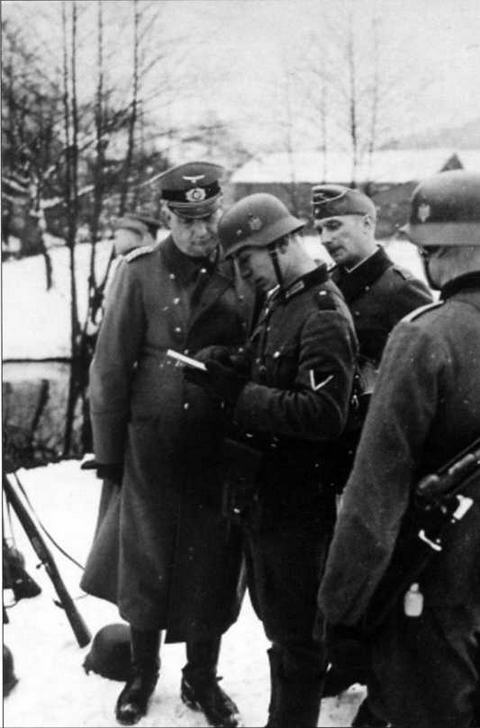 Вверху: полковник Кайнулайнен с группой офицеров осматривают башенный колодец второго башенного блока перед эвакуацией Мякилуото. 20.09.1944 г.