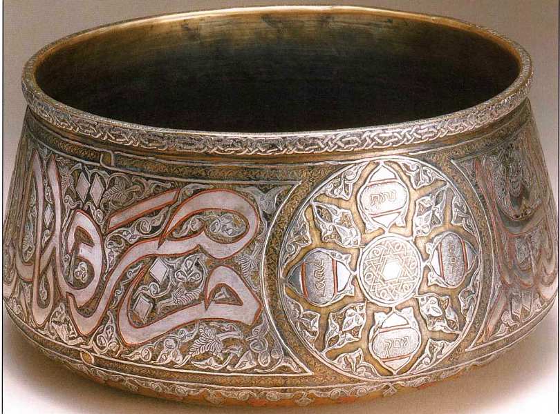 Интересно, что на данной кастрюле присутствует особая владельческая надпись. Возможно, она имеется потому, что хозяйки оставляли на общей плите еду, приготовленную заранее для субботних трапез (ведь в саму субботу варить запрещено). Текст гласит: «[Супруга] Гиртца Поперта, дочь Моше Лейтера, 5340 г.» (1579/1580). Слева от фамилии Лейтер помещено схематичное изображение лестницы («лейтер» — по-немецки «лестница»). Владелица кастрюли не названа по имени, она определена как жена и дочь. По всей видимости, ее отцом был человек, живший в доме с гербом в виде лестницы. Надписи на иврите довольно редко встречаются на бытовых предметах. Поскольку каждая буква в алфавите имеет также числовое значение, то при составлении текста имеется простор для игры словами и датами. Часто последняя зашифрована в стихе из Писания или какой-либо фразе, в которой значится фамилия владельца. Год, записанный на этом предмете, также может быть прочтен по-немецки как «лестница».