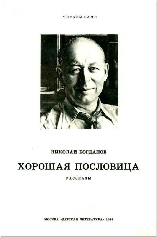 Дорогие ребята!Николай Владимирович Богданов написал много книг для детей и юношества. Когда вы подрастёте, вы прочитаете его книги о первых пионерах и комсомольцах: «Когда я был вожатым», «Один из первых», «Партия свободных ребят» и другие. Он сам был участником событий, о которых рассказано в этих повестях.В годы Великой Отечественной войны Н. В. Богданов был военным корреспондентом. Его рассказы для детей о войне, собранные в книге «О смелых и умелых», также написаны на основе личных наблюдений. С некоторыми из этих рассказов вас и познакомит книга «Хорошая пословица». Мы надеемся, что вам понравятся герои этой книги — смелые и умелые воины, которые всегда находили выход из трудного положения.