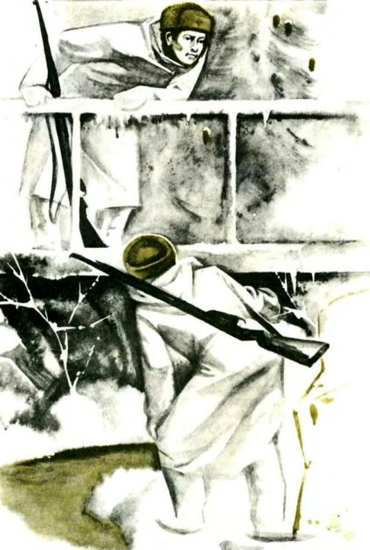 Рота шла по дороге, взяв лыжи на плечи. Жнивина послали вперёд с отличным лыжником Сушковым.