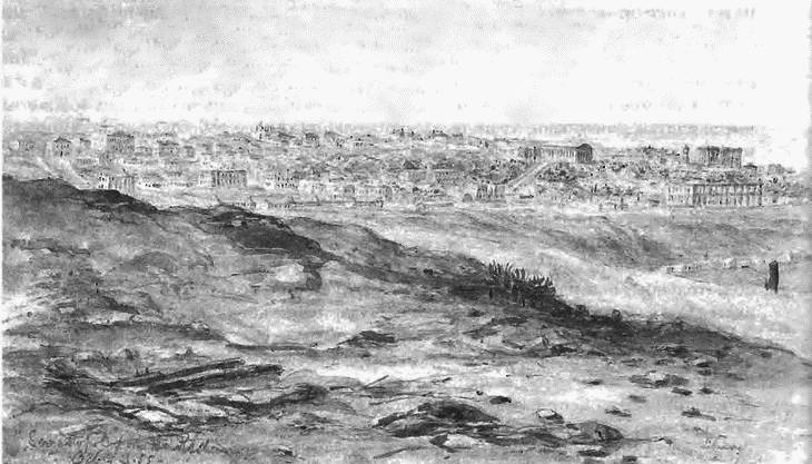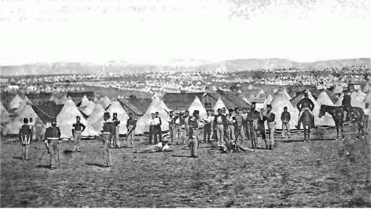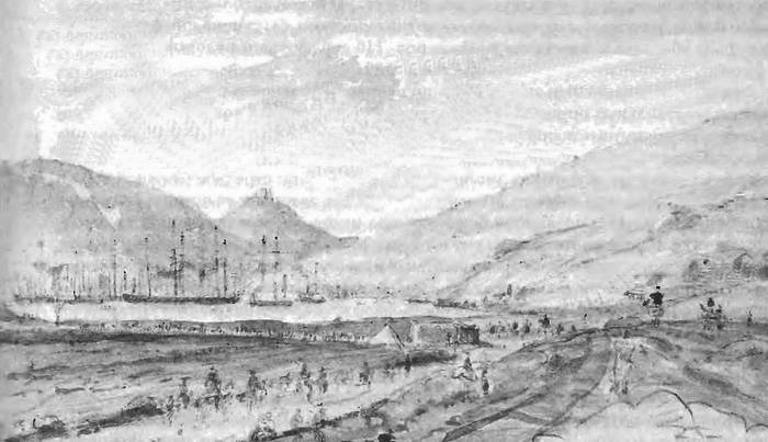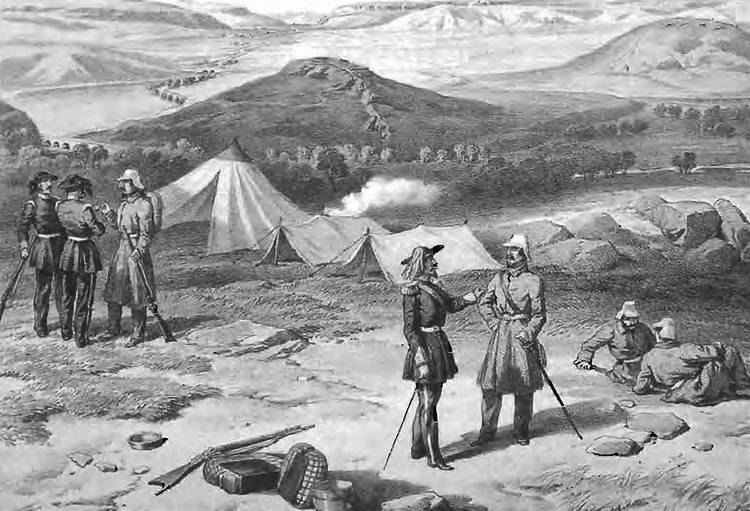 Расположение сардинских войск под Севастополем. Фрагмент рисунка В. Симпсона. 1855 г.
