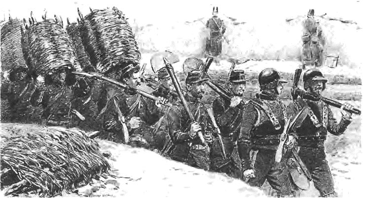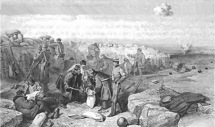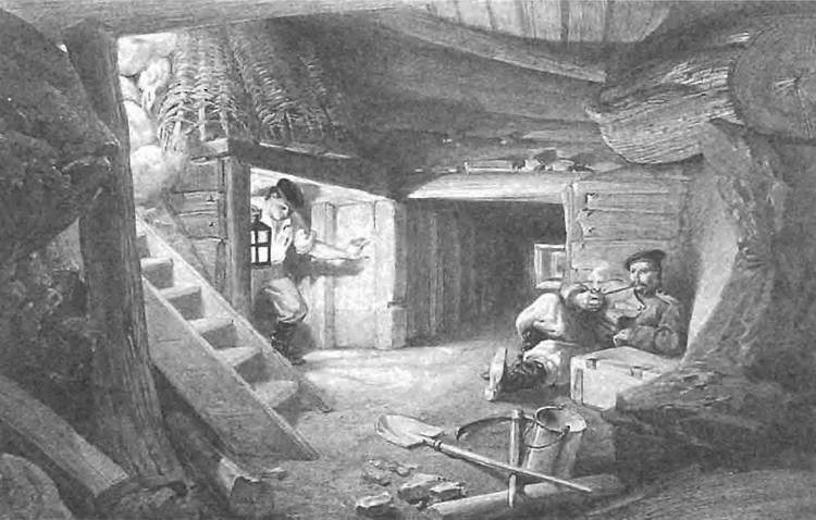 Пехотинцы российской императорской армии под Севастополем. Рисунок сер. XIX в.