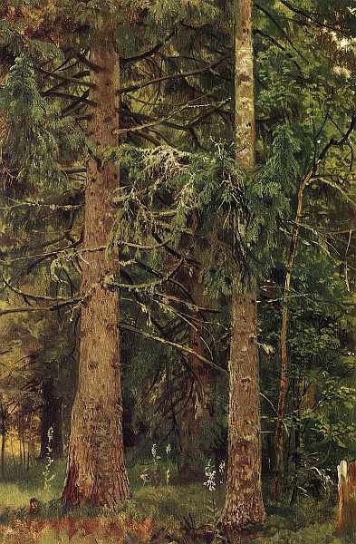 Философия шишкинского пейзажа, утвердившаяся на многие годы, исходила из восхищения натурой, в которой виделось проявление вечной жизни природы. Может быть, вследствие такого понимания пейзажной задачи уже в начале пути сформировались два фактора, обусловившие все творчество художника. Это — особое внимание и самое пристальное изучение предметного плана и как следствие этого — любовная проработка переднего плана картины.