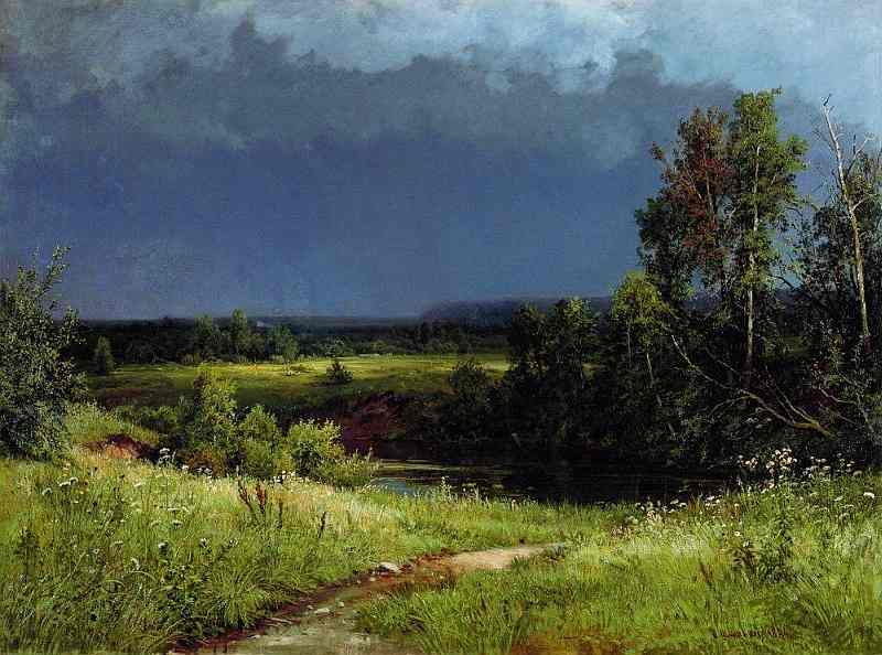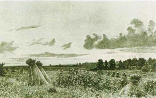 Полдень. Окрестности Москвы. Братцево (1866), оконченной спустя год после возвращения. Вместе со Львом Каменевым художник провел лето на этюдах в подмосковном селе Братцево. Для Шишкина все было новым: виды Подмосковья, равнинное раздолье, освещение, частые дожди и грозы. Ко всему надо было привыкать, отвыкая от швейцарских впечатлений. Картина