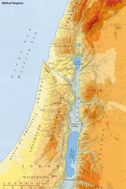 Более важным, чем даже конкретные идентификации, было растущее знакомство с основными географическими регионами библейской земли. (Рис. 2): широкими и плодородными равнинами Средиземноморья, предгорьями Шефелы, поднимающимися к центральному нагорью на юге, засушливой пустыней Негев, районом Мёртвого моря и Иорданской долины, северным нагорьем и широкими долинами на севере страны. Библейская земля Израиля была областью с необычными климатическими и экологическими контрастами. Она также служила естественным сухопутным мостом между двумя великими цивилизациями Египта и Месопотамии. Её характерные пейзажи и условия практически в каждом случае оказались достаточно точно отражёнными в библейском повествовании.