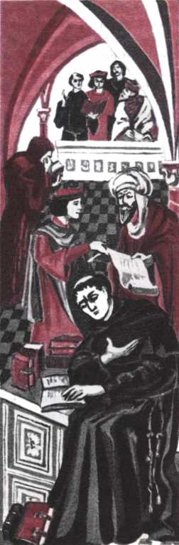 Аверроэс (Ибн Рошд Мухаммед) (1126–1198) — арабский мыслитель, живший в Испании. В своем философском учении высказал ряд материалистических идей. Отрицал сотворение мира богом, бессмертие души, отстаивал принцип «двойственности истины», согласно которому научныеидеи не обязательно должны согласовываться с идеями религиозными. Подвергался нападкам богословов и церковников, которые видели в нем злейшего своего врага.