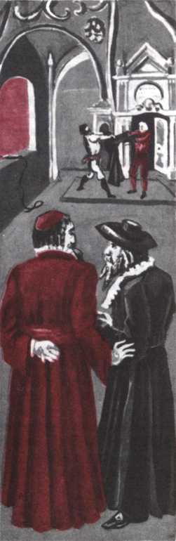 «В 1592 г. некий служитель христовой церкви, бенедиктинский монах Джордано Бруно, был заключен в Plombi (Свинцовую тюрьму) в целях пресечения пропаганды учения о движении Земли. Через 8 лет, т. е. в 1600 г., Бруно был отлучен от церкви и приговорен к наказанию „по возможности милосердно и без пролития крови“, что в переводе с языка святейшей инквизиции означало сожжение живьем на костре. Как известно, эта мера была осуществлена немедленно.