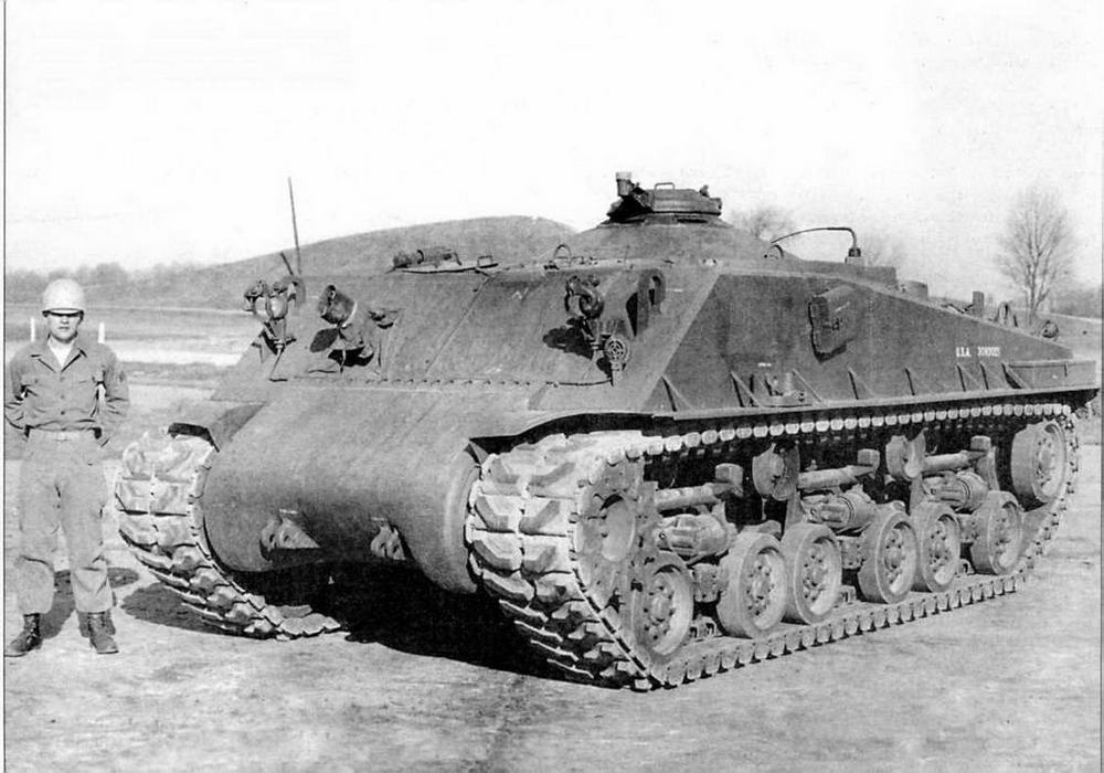 Опытный образец огнеметного танка Т68, разработанного в США после войны. Абердинский полигон, 1946 год