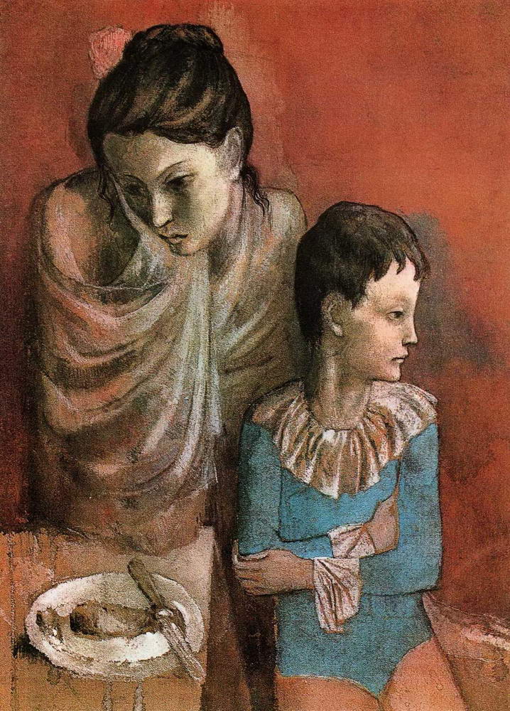 Во всей поэзии девятнадцатого века (а Пикассо был восторженным поклонником поэзии) голубой цвет считался символом одухотворенности. Картина «Мать и сын» (1905, Штутгарт, Государственная галерея).