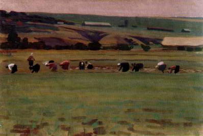 Среди многообразных проявлений народной жизни и быта Иванов особенно ценит минуты простого, искреннего общения, когда закончившие необходимые дела крестьяне на дальних полях собираются за обеденным столом. Во время ежедневных походов за натурным материалом он сам становился свидетелем, а то и участником застолий, венчавших дневные полевые работы, строительство колхозного или личного дома, который также возводился сообща, всем миром.