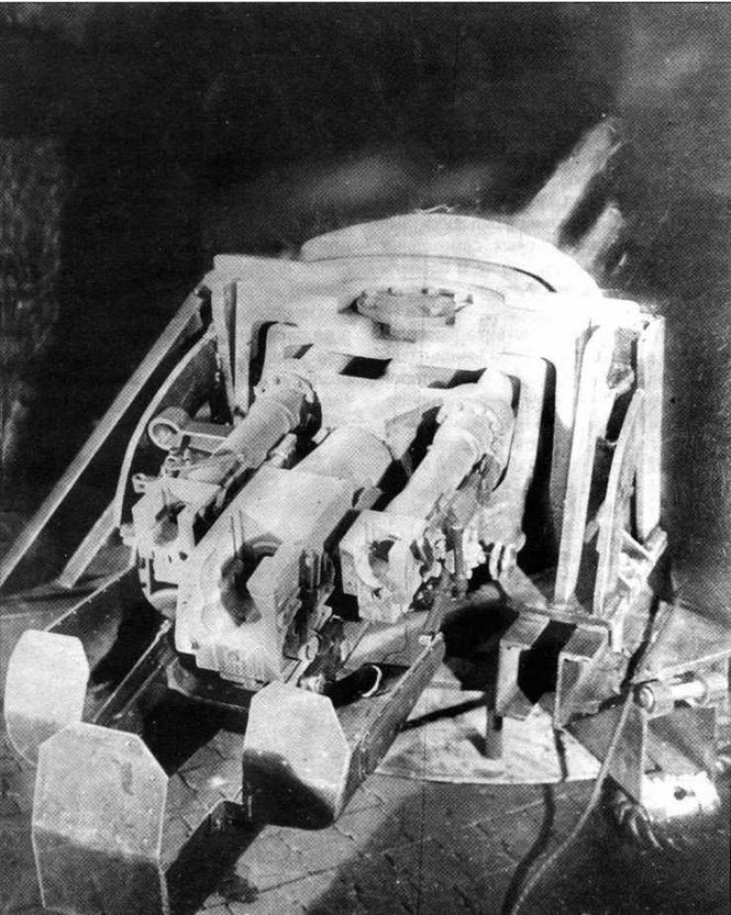 Строенная установка 45-мм и 76-мм орудий во время испытаний стрельбой на УЗТМ, декабрь 1941 года