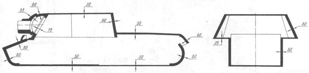 Броневая защита корпуса и боевой рубки была выполнена из катаных броневых листов толщиной 20, 30, 50 и 60 мм, имевших рациональные углы наклона к вертикали. Броневые листы соединялись между собой сваркой.