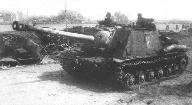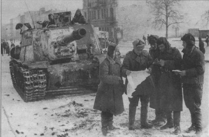 В 8-й гвардейской армии 1-го Белорусского фронта в боях за город Познань в состав штурмовых групп 74-й гвардейской стрелковой дивизии были включены по две-три ИСУ-152 394-го гвардейского тяжелого самоходно-артиллерийского полка. 20 февраля 1945 года в боях за 8-й, 9-й и 10-й кварталы города, непосредственно прилегавшие к южной части крепостной цитадели, штурмовая группа в составе взвода пехоты, трех ИСУ-152 и двух танков Т-34 очищала от противника квартал № 10. Другая группа в составе взвода пехоты, двух самоходно-артиллерийских установок ИСУ-152 и трех огнеметных ТО-34 штурмовала 8-й и 9-й кварталы. В этих боях САУ действовали быстро и решительно. Они приближались к домам и в упор уничтожали размещенные в окнах, подвалах и других местах зданий немецкие огневые точки, а также проделывали проломы в стенах зданий для прохода своей пехоты. При действиях вдоль улиц самоходки двигались, прижимаясь к стенам домов и уничтожая огневые средства противника, расположенные в зданиях на противоположной стороне. Своим огнем установки взаимно прикрывали друг друга и обеспечивали продвижение пехоты и танков. Вперед самоходно-артиллерийские установки продвигались поочередно перекатами, по мере продвижения пехоты и танков. В результате кварталы были быстро заняты нашей пехотой и немцы с большими потерями отошли в цитадель.
