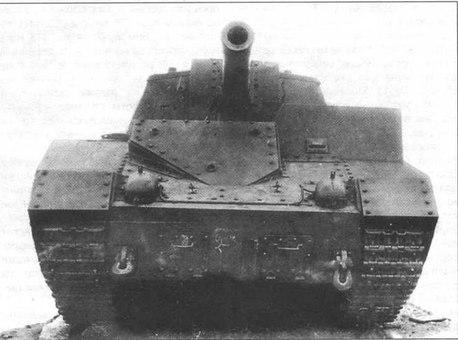 Первый вариант артсамохода КВ-7, вид спереди. Зима 1942 года