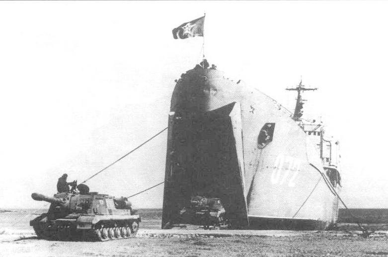Загрузка самоходных орудий ИСУ-152М в большой десантный корабль типа «Воронежский комсомолец». Конец 1960-х годов