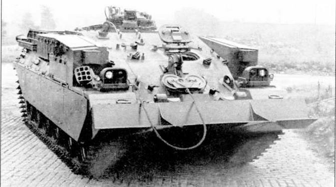 БРЭМ Британской Рейнской армии с фашиной и бульдозерным отвалом; вверху — БРЭМ F.V.4202
