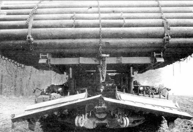 Ходовая часть включает шесть опорных катков и имеет заднее расположение ведущих колес. Опорные катки двускатые, с резиновыми шинами и съемными стальными дисками. Поддерживающие катки (по три на борт) также двускатные, обрезиненные. Ведущие колеса снабжены стальными съемными зубчатыми венцами (по 12 зубьев на венце). Гусеницы — с открытыми шарнирами последовательного типа и съемными асфальтоходными подушками (по одной на трак). Механизм натяжения гусениц — кривошипно-червячного типа. Ресурс элементов ходовой части составляет 2 — 5 тыс. км. Нижний предел (2000 км) определяется надежностью открытого шарнира гусениц, верхний (5000 км) — зубьями венцов ведущих колес. Ходовая часть для защиты от легких кумулятивных противотанковых средств прикрыта стальными четырехсекционными экранами толщиной 10 — 15 мм.