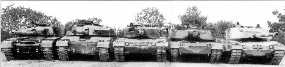 «Чифтен» Mk.11/1; «Челленджер» Mk.1; «Леопард-2»; «Абрамс-1 А1» и «Виккерс» Mk.7