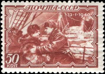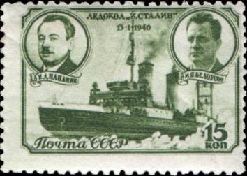 Встреча К. С. Бадигина и И. Д. Папанина на борту ледокола «И. Сталин». Марка