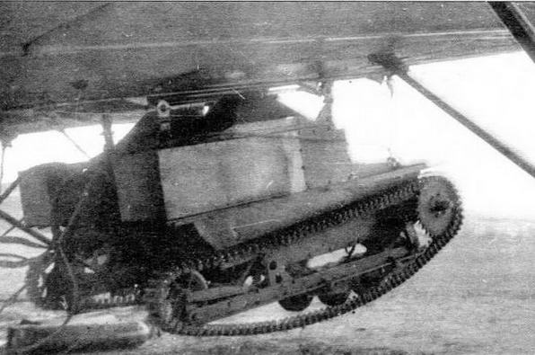 на колеса и обтекатель перед радиатором. От мотоциклов и автомобилей перешли к бронетанковой технике. В 1932 году изготовили образец системы Г-43 (ПД-Т) для сброса с парашютом английской танкетки «Карден-Ллойд» или ее советского варианта Т-27. Поскольку масса танкетки значительно превышала предельно допустимую нагрузку бомбардировщика ТБ-1, ее облегчили на 344 кг, сняв все, что можно и даже слив воду из системы охлаждения. Самолет тоже пришлось облегчить. В частности, демонтировали одну из задних турелей и все пулеметы. Кроме того, значительно уменьшили запас горючего. В декабре 1932 года систему ПД-Т испытывали в НИИ ВВС. Она стала прообразом большого количества подобных устройств, предназначенных для десантирования легких танков, бронемашин и автомобилей.