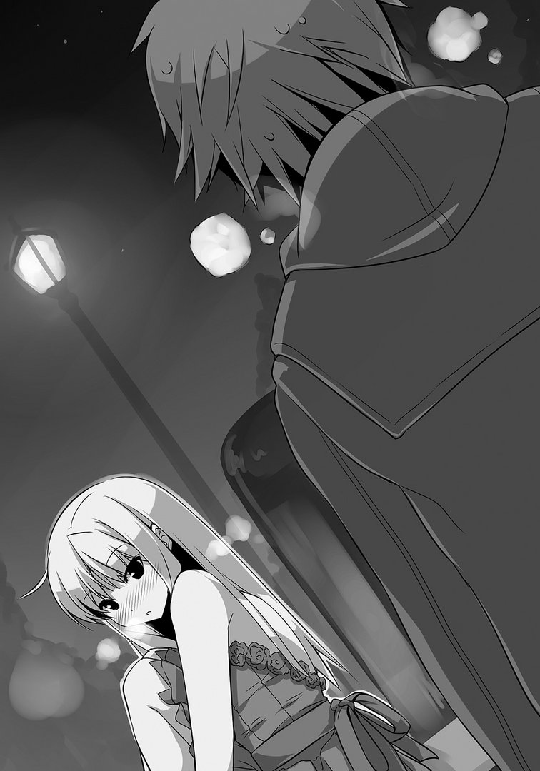 По выходу Сората обнаружил в почтовом ящике привычный почтовый конверт. Уведомление о результатах «Давайте сделаем игру». Он не стал открывать конверт, а молча засунул его дрожащей рукой в карман.— ...Масиро вопросительно на него посмотрела, но Сората сделал вид, что не заметил, и зашагал вперёд.Путь до станции лежал через торговый район на улице Красных кирпичей, и пока Сората шёл там с Масиро, знакомые с озорством на них глазели. Покрывшись потом и придумывая оправдания, Сората отчаянно перебарывал желание дать дёру, но держал ровный шаг, идя с Масиро на одной скорости.Муки закончились, когда они добрались до станции перед университетом и сели на поезд. За час езды они практически не разговаривали, молча подрагивая вместе с вагоном.По пути Масиро несколько раз позвала его:— Сората...— Что?— Ничего...Лишь в таком духе они и говорили. Сложилась очень неловкая ситуация.Даже самый содержательный разговор получался коротким:— Сората, тот конверт...— Результаты отбора...— Угу… не посмотришь?— Потом...— Ясно...После одной пересадки выйдя на своей платформе, Сората судорожно вздохнул.По поводу места встречи Аяно сказала, что они сразу увидят его, когда поднимутся по лестнице из подземки. Так и получилось — Сората нашёл нужное место, выйдя на поверхность.На немноголюдной, напоминающей парк площади между знаменитым иностранным отелем и офисным зданием располагался фонтан, от которого исходила ледяная аура. Как и диктовал сезон, окрестности украсили гирляндами, и здесь идеально было бы назначать свидание.Аяно, которая подошла пораньше, заметив их, подала знак, слегка помахав рукой.— Благодарю, Сората-кун.Она накинула поверх делового костюма пальто.— Да ничего, у меня тоже тут дела.— Да? Тогда я забираю у тебя принцессу.— А когда вернёте?— Раз уж нельзя задерживать старшеклассников допоздна, нормально будет здесь полдесятого?— Хорошо.Пока Сората разговаривал с Аяно, Масиро пристально глядела на его лицо с тревогой в глазах, но парень специально ничего не стал спрашивать, решив, что она ответит ему «Ничего».— Ладно, до встречи.Аяно помахала рукой и повела Масиро за собой. Их фигуры вскоре растворились в рождественской толпе.Оставшись один, Сората решил до прихода Нанами полюбоваться иллюминацией под холодным небом. Красный и зелёный, белый и синий — гармоничное мерцание огней создавало фантастическую картину.Прищурив глаза от ярких вспышек, Сората навалился на уличный фонарь и поёжился от холода.Дыхание превращалось в пар. Синоптики прогнозировали на сегодня самый холодный зимний день.Посмотрев на небо, Сората увидел, что над головой собрались тяжёлые облака и закрыли собой звёзды.Одна за другой встречались парочки и с улыбками шли гулять. Отрешённо глядя на них, Сората вдруг кое-что понял. Разве ожидание девушки на улице, поход с ней в кино и кафе люди не называют свиданием?«?.. Это… Неужели у меня тоже свидание?»От этой мысли Сората поднапрягся.Когда он сосредоточился на парочке студентов, чтобы отвлечься, сзади его внезапно хлопнули по плечу. Он удивлённо повернул голову. И ему в щеку тыкнули пальцами в перчатке.— Это...Сората намеревался наказать ей больше так не делать, но не довёл фразу до конца. Вместо этого он без конца захлопал глазами.Перед ним стояла девушка с уходящими вниз прямыми волосами, одетая в красное пальто. Дрожащ