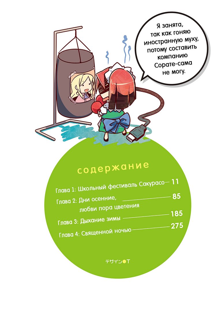 Реквизиты переводчиковНачальные иллюстрацииПрологГлава 1. Школьный фестиваль Сакурасо Часть 1 Часть 2 Часть 3 Часть 4Глава 2. Дни осенние, любви пора цветения Часть 1 Часть 2 Часть 3 Часть 4 Часть 5Глава 3. Дыхание зимы Часть 1 Часть 2 Часть 3 Часть 4Глава 4. Священной ночью Часть 1 Часть 2 Часть 3 Часть 4ПослесловиеПослесловие команды*** Примечания ***